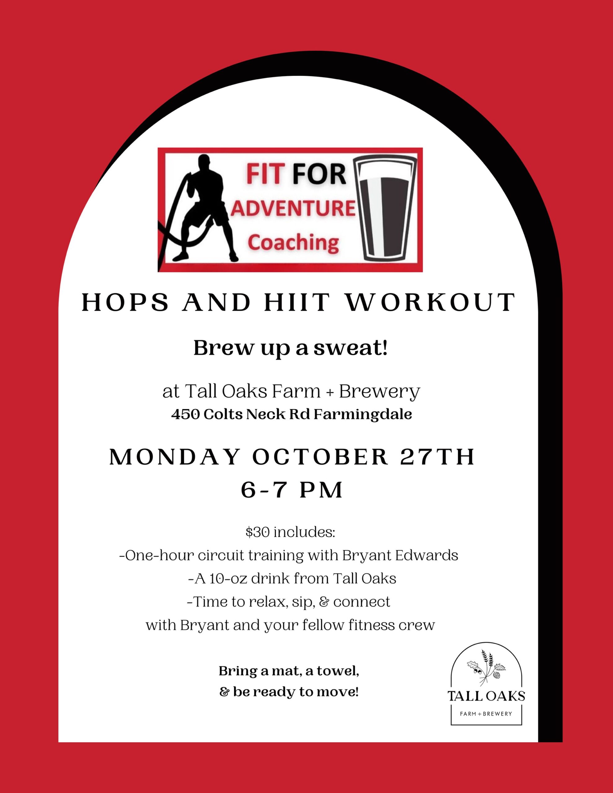 Sweat & Sip With Bryant Edwards 💥 Raise a Glass After Class – We’re Celebrating National Beer Day at Tall Oaks🍺💪 Local fitness pro Bryant Edwards is back and ready to fire up your week with another high-energy workout session! Click here to register + Add to Google Calendar + iCal / Outlook export Date Oct 27 2025 Expired! Time 6:00 pm - 7:00 pm Category Event